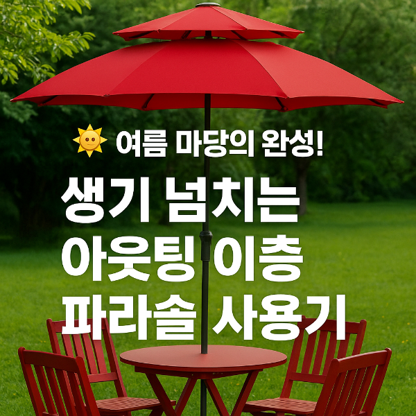 그래서 파라솔을 검색하다가 아웃팅 이층 파라솔과 테이블 세트를 주문하게 되었다.