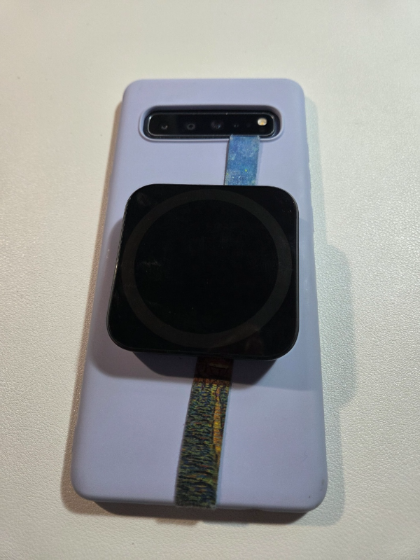 휴대폰 뒤에 착 붙어 충전이 되니 폰을 내려놓지 않고도 충전과 사용을 동시에 할 수 있다.